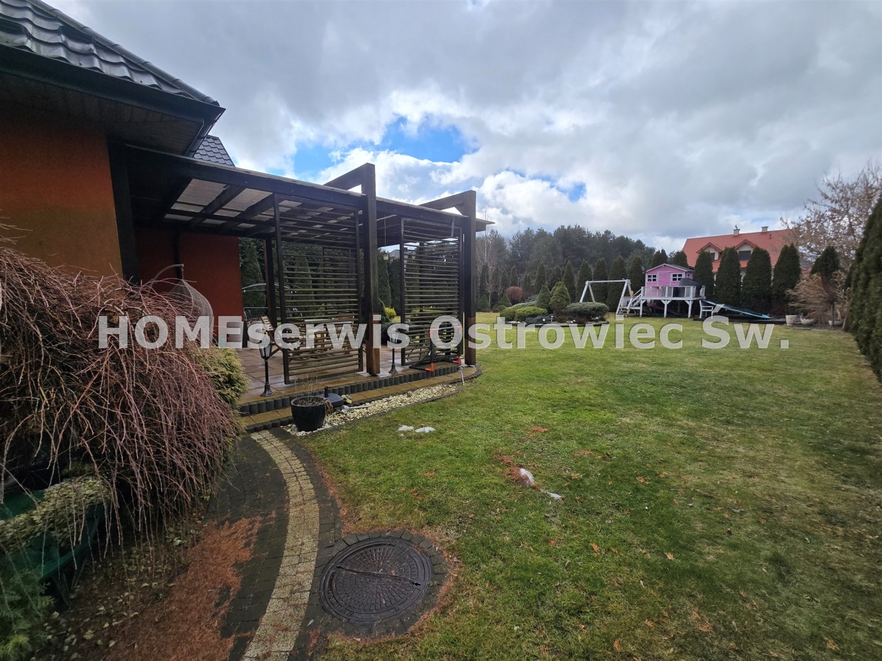 Dom częściowo podpiwniczony, garaż w bryle budynku, za domem duży taras z widokiem na obszerny ogród z zabudową do zabaw dla dzieci.