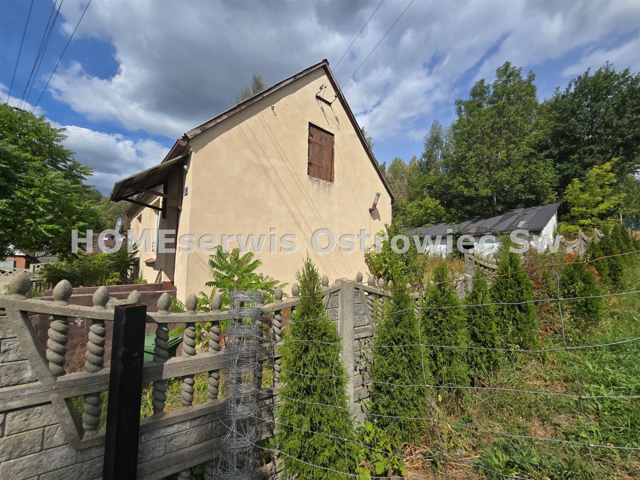 Agencja HOMEserwis Ostrowiec >Świętokrzyski prezentuje sprzedaż domu murowanego o powierzchni 45 m2 na ogromnej działce 3253 m2 w miejscowości Janik, tuż obok granic Ostrowca. Rok budowy domu 1965r. Dach kryty eternitem, okna PCV.