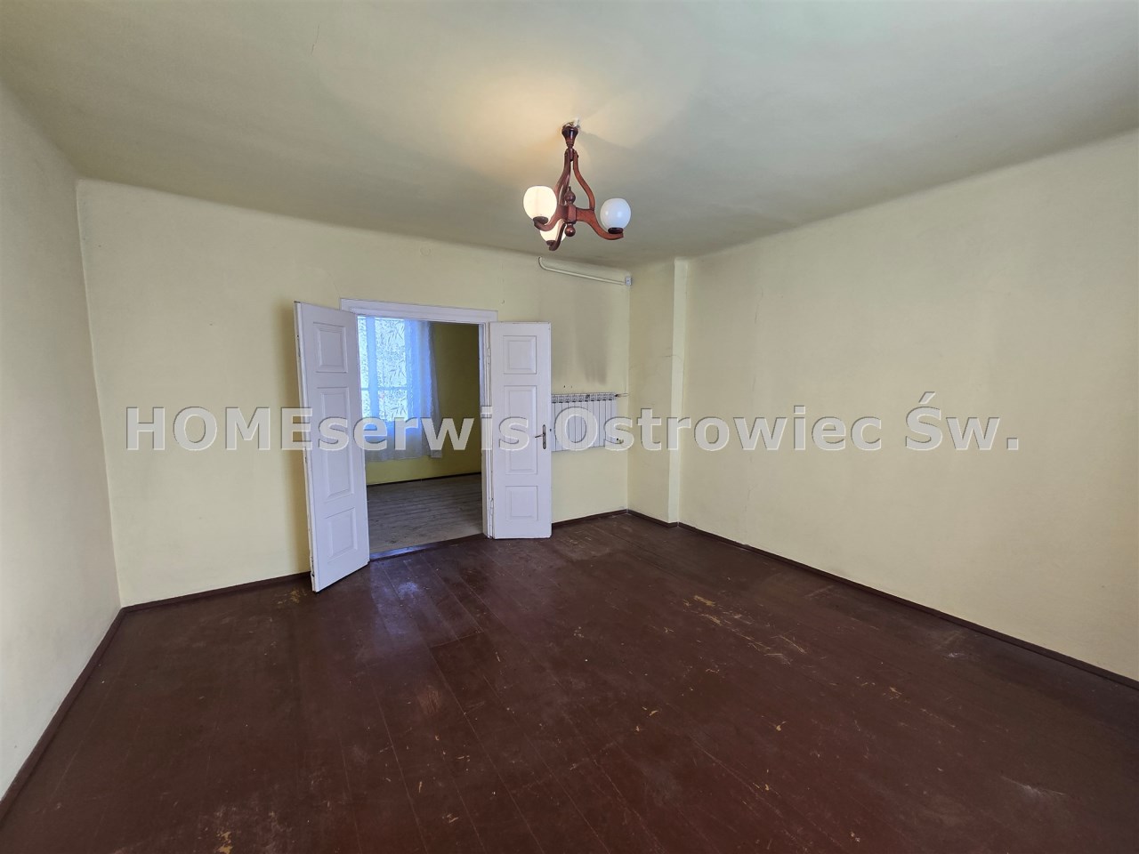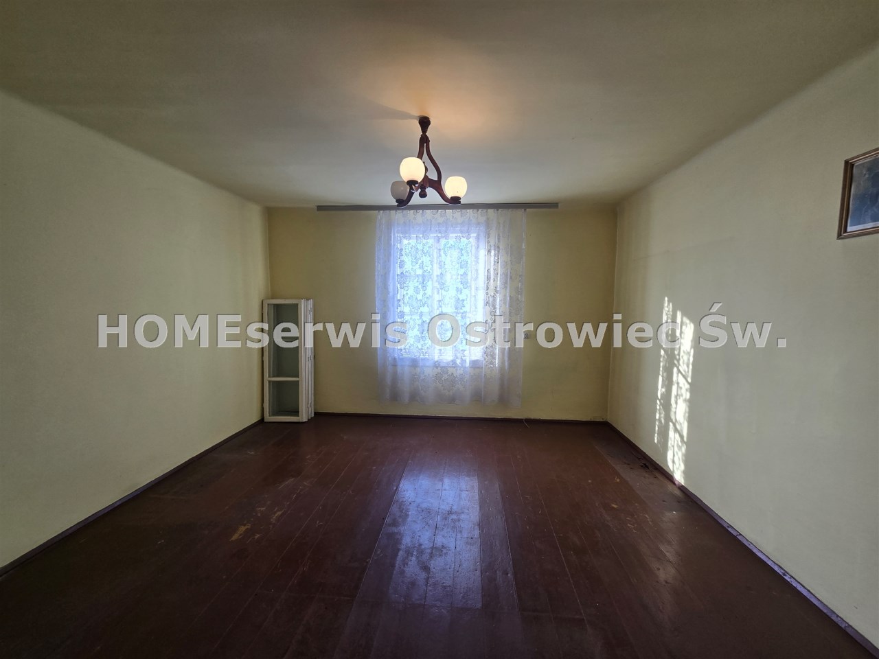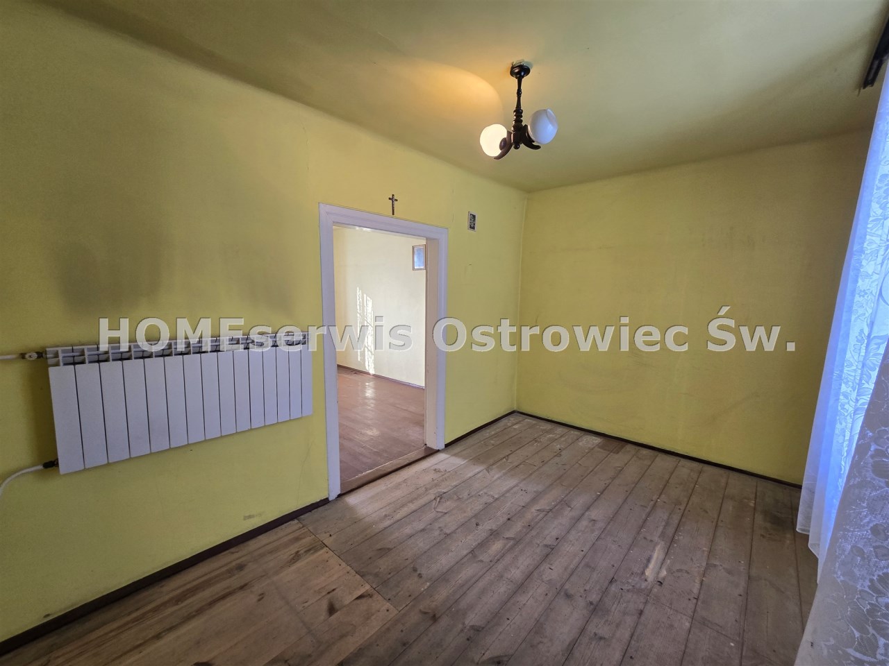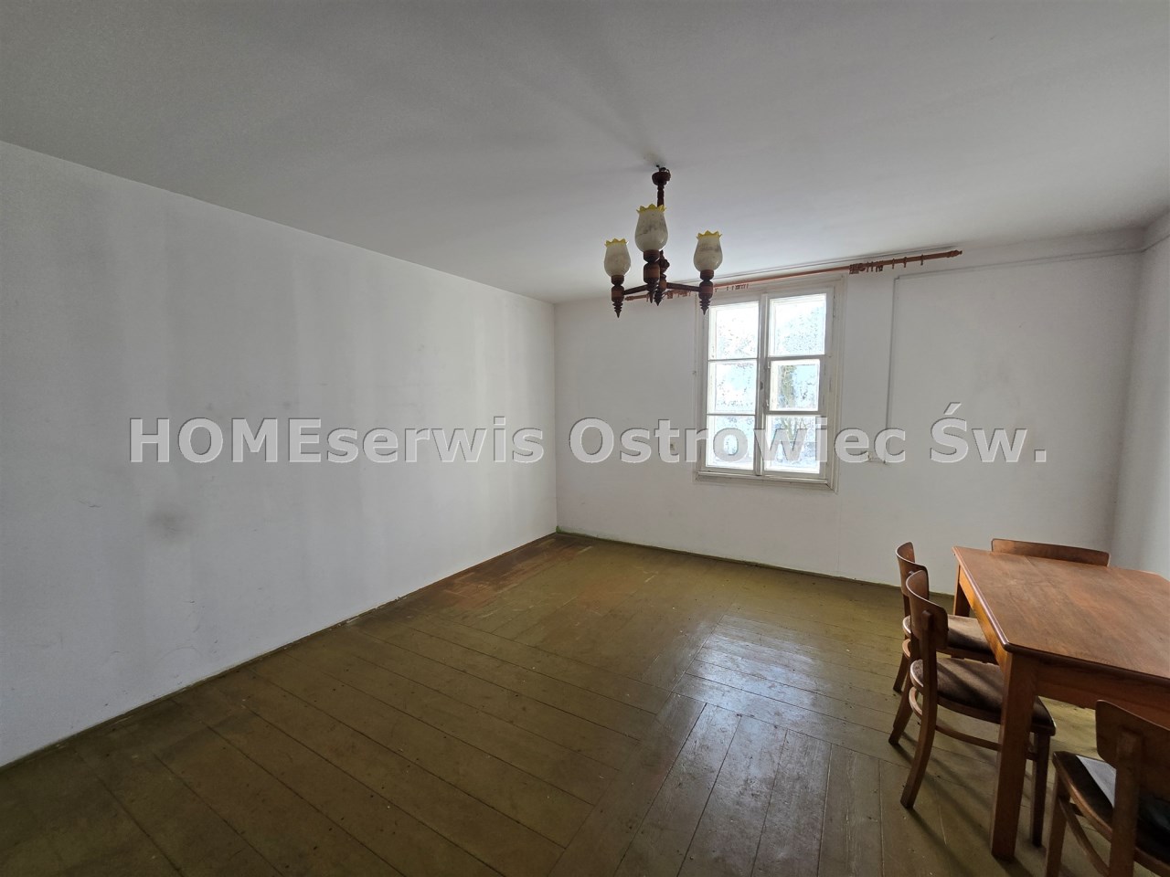 Ogrzewanie piecem na drewno-węgiel z płaszczem wodnym (kaloryfery w każdym pomieszczeniu), solidne podłogi z desek, okna stare drewniane do wymiany.
