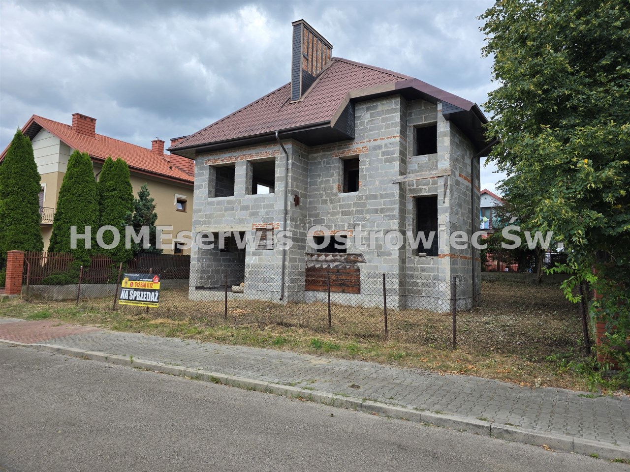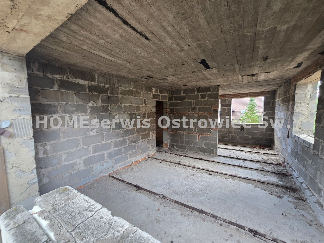 Agencja HOMEserwis Nieruchomości Ostrowiec Św. ul.Iłżecka 23 oferuje sprzedaż domu w stanie surowym otwartym w dzielnicy Kolonia Robotnicza, wśród nowych domów jednorodzinnych, lokalizacja w cichym osiedlu w pobliżu lasu.Dom o powierzchni całkowitej 204 m2 i użytkowej ok.120-160 m2 (budowa w latach 90-tych, gdzie uwzględniono garaż w bryle budynku oraz gabinet na parterze a także poddasze użytkowe o wys. 190 cm z pokojami do zabudowy.